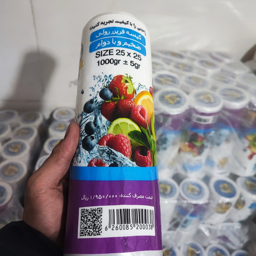 کیسه فریزر رولی ضخیم و باکیفیت مناسب بستهبندی مواد غذایی، دارای دوخت محکم و پرفراژ روان برای جدا شدن آسان هر برگ.